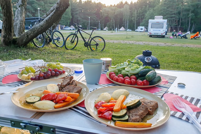 Šių metų vasaros sezoną pradedame apsilankymu Birštono "NaturCamp" kempinge, įsikūrusiame pušų apsupty. Visiškai šalia (už kempingo tvoros) tvenkiniai su įrengtu paplūdimiu ir vandens pramogomis, batutu, vandenlenčių parku. Kempingo teritorijoje tiek suaugusiems, tiek vaikams tinkamas laipiojimo uolomis bokštas. Administracinis pastatas turi kavinę, kurioje savaitgaliais ant laužo kepamas maistas, mūsų apsilankymo metu, tai buvo plovas, sekmadienio ryte - blynai su šviežiomis uogomis, kuriais teko pasivaišinti. Puiki idėja! Kempingas itin rūpinasi švara, be to, jis yra gana naujas, tai viskas prižiūrėta ir tvarkinga. Teritorijoje yra nameliai, specialios "Glamping" palapinės, tiems kas be savų palapinių ir kemperių. Na ir žinoma, atskiras pastatas su viskuo, kas būtina: virtuve su įranga, dušų erdvėmis, skalbykla. Veiklos čia netrūksta taip pat, nes kempingas Birštono kurorte, ramioje vietoje, šalia Žvėrinčiaus miško, tai daug dviračių takų, veiklų, netoli miesto centras, aukščiausias Lietuvos bokštas, Škėvonių atodanga, Prienai ir t.t. Turėjome pasirinkę dviračius, tai Birštono turizmo centro puslapyje pasirinkome norimą, dar nevažiuotą maršrutą ir pasivažinėjome. Daugiau informacijos apie kempinga: https://www.naturcamp.lt/